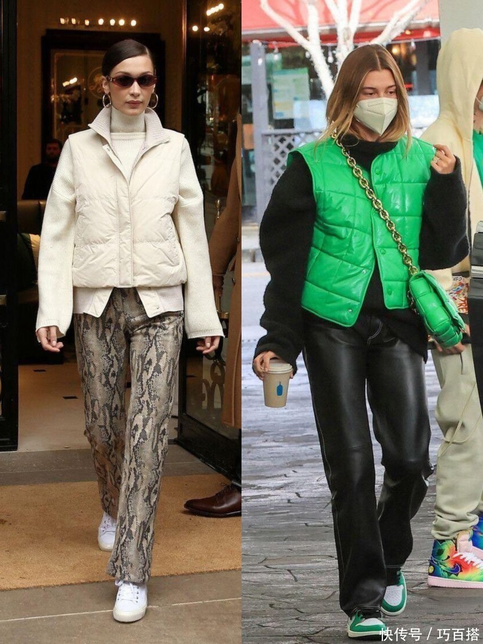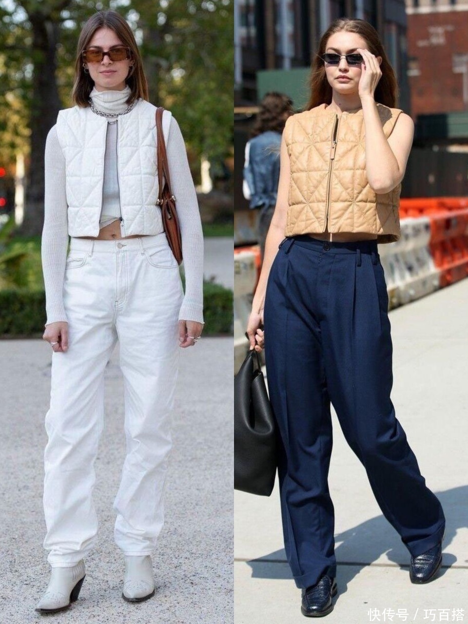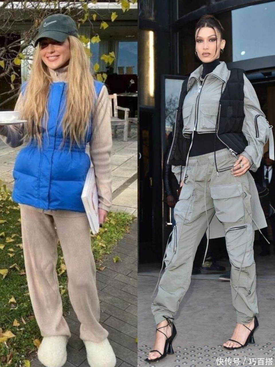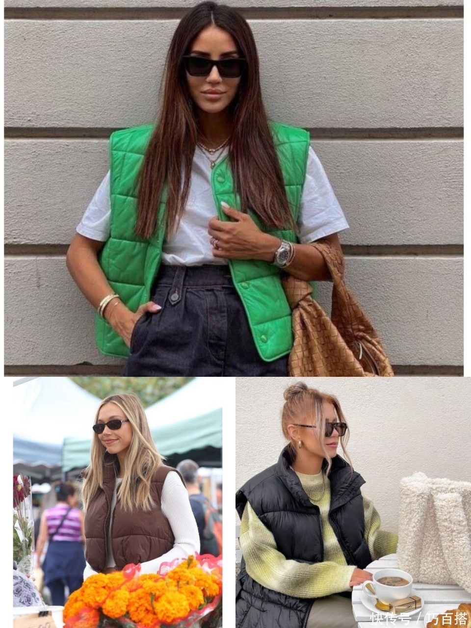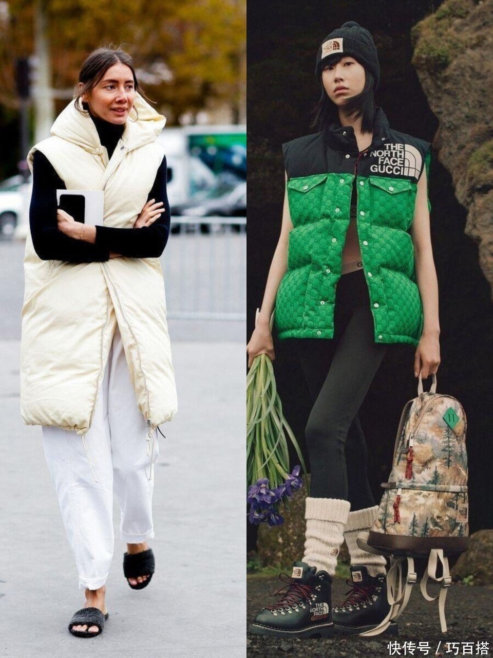 第三,羽绒马甲上身,既能保留线索感又不会让东说念主合计拖累,通过无袖缠绵表现内搭,讲究又实用。